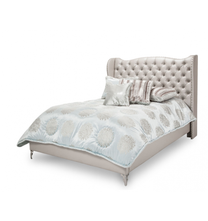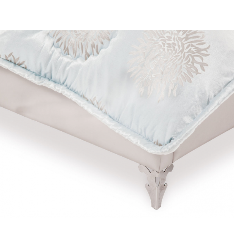 The tall statement headboard is fully upholstered and tufted with crystals, creating glamour and elegance that are simply breathtaking.