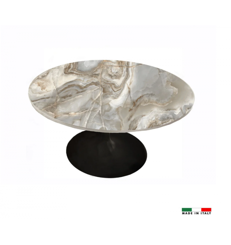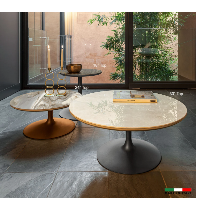 Coffee table 30" ceramic top with Epoxy coated goblet shaped base.