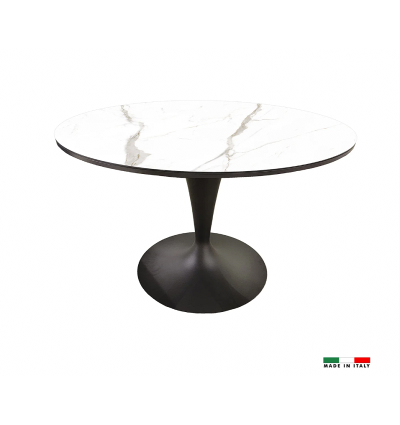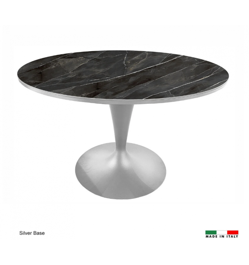 Sole Round Dining Table 39" ceramic Top, (Available in Calacatta Black, Calacatta White Opaco Matte) Base Option in Anthracite, Copper, Silver Dimension: Dia 39" x H30"