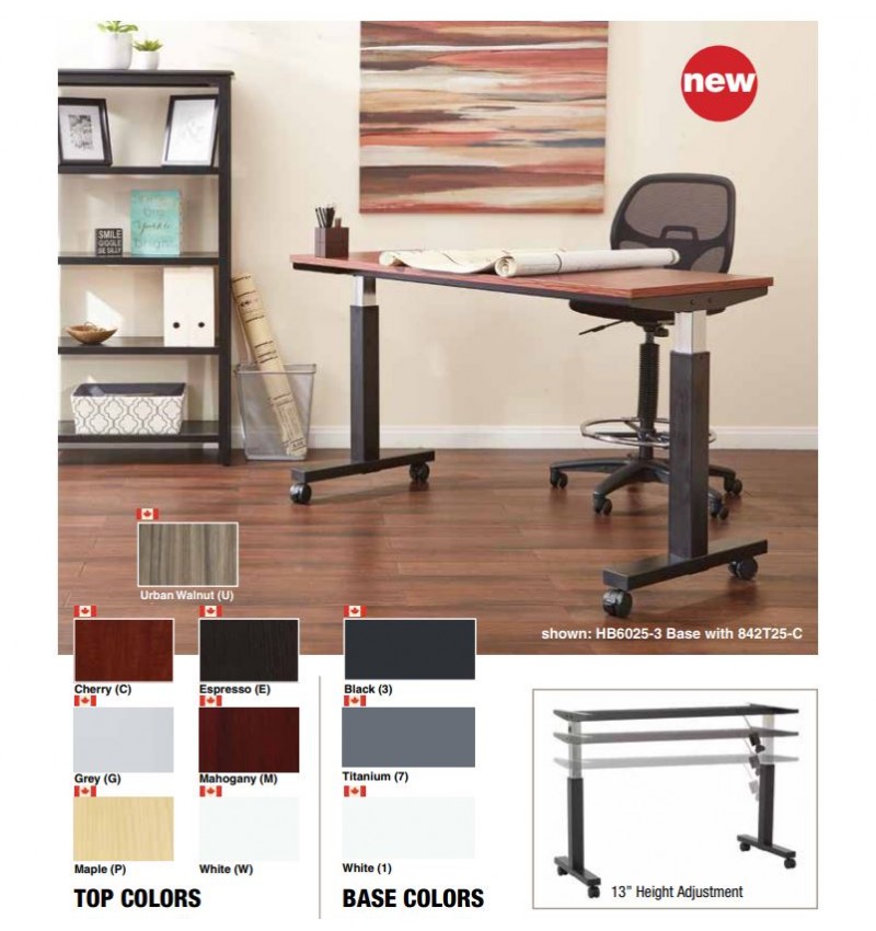 Brand new height adjustable tables are the remarkably perfect, simple solution to versatility and functionality. Stay in motion throughout the workday quickly and seamlessly with a surface that can be adjusted with one touch on its easy-reach lever. Stand and work with your tabletop waist-high, or study sitting down with your books and materials within an arm’s reach. With locking black casters, the table glides about easily for relocation when performing collaborative work or simply for sliding out of the way when no longer needed. It’s reliable function in motion for an excellent value!