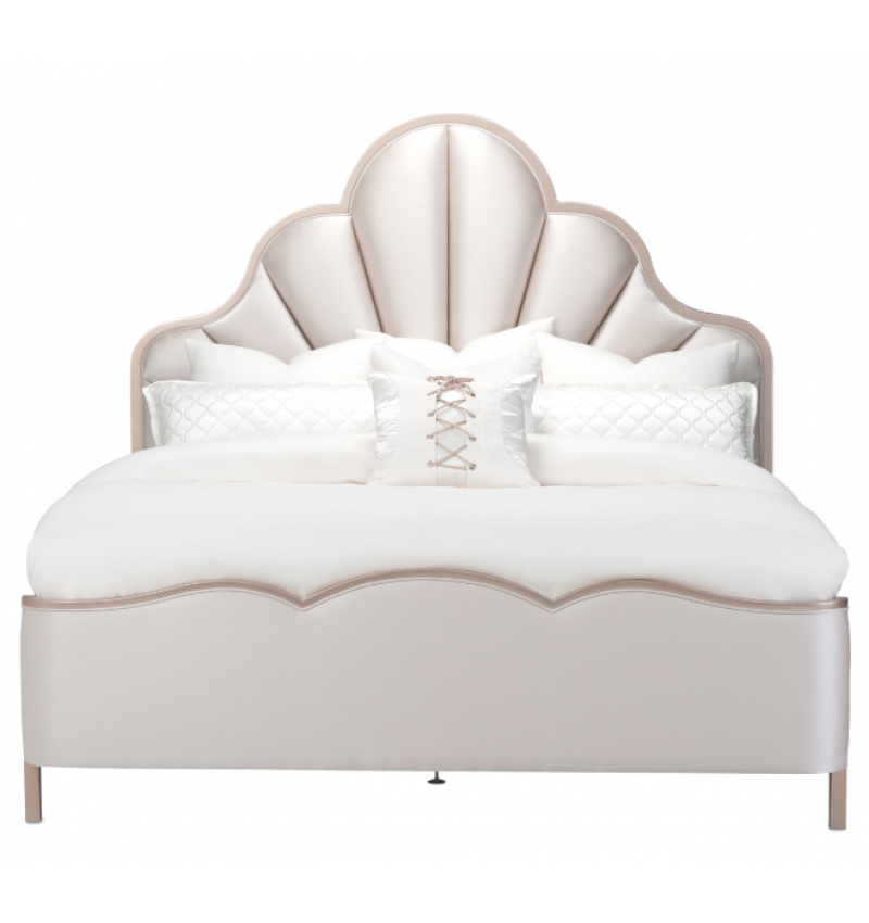 Find your interior glow with the Malibu Crest Scalloped Panel Bed. With a curved fan panel headboard, convenient USB chargers, and silky paneling sure to brighten your home, you’ll be feeling glamorous and elegant all at once.