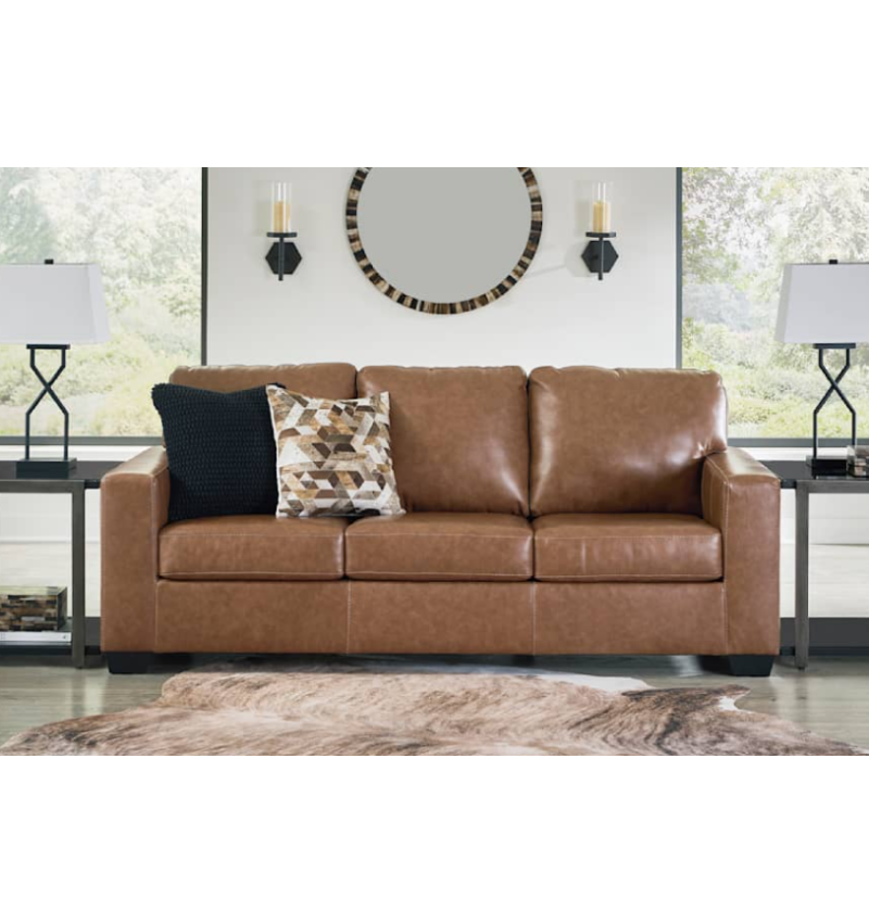 Few sofas demand attention like the Bolsena. It's wrapped in expertly matched leather and faux leather upholstery that's sure to please. A two-tone effect enhances the depth of color for a uniquely rich appeal. Every inch of this striking piece is tailored to perfection, with clean, refined lines that take sofa design to a new level.