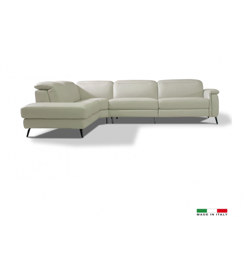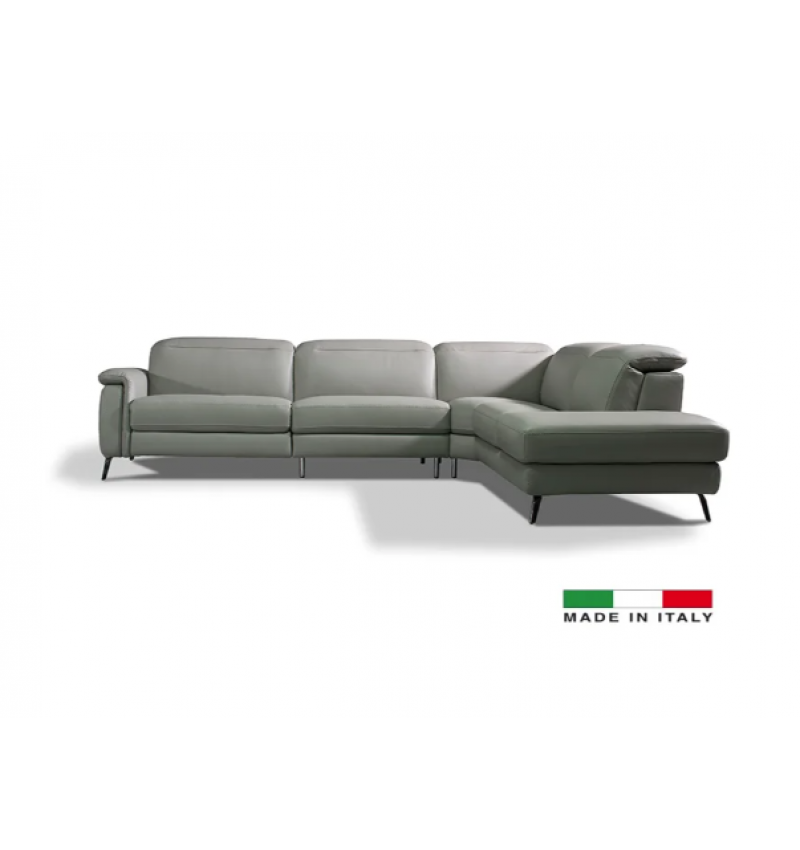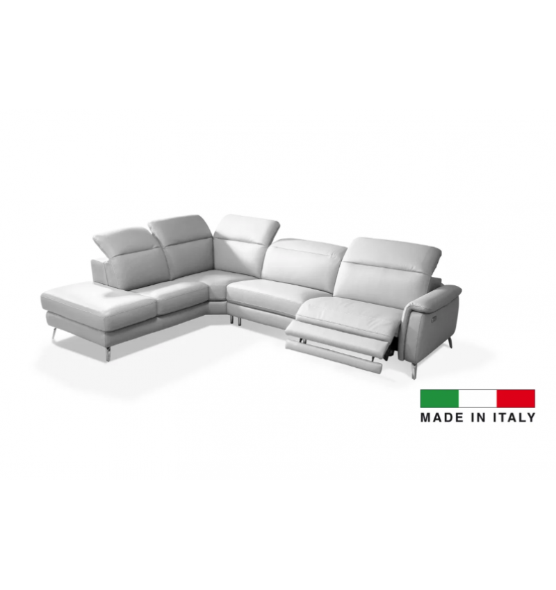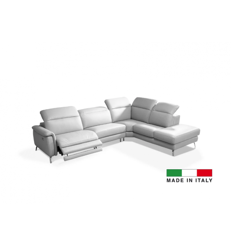 Collezione Allegro Left hand facing and Right Hand facing Full Grain Italian Leather in Grey CAT 50. 50865 , white CAT 35 WHITE 35612 and dark grey CAT 35 DARK GREY 35607 Light Grey 35602 Available in with motion headrests & 1 power recliner with 2 motors in each seat. Made in Italy.