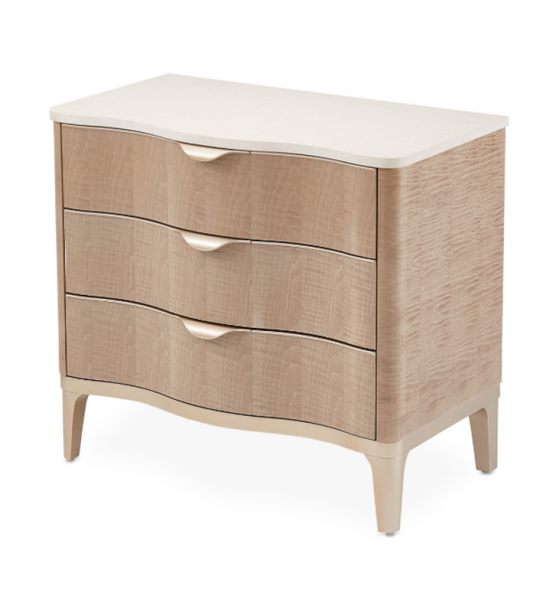 The Malibu Crest Nightstand is made to attract attention. This elegant piece features beautiful Maple veneers, delicate waterfall handles and cultured marble top. Quality is in every detail!