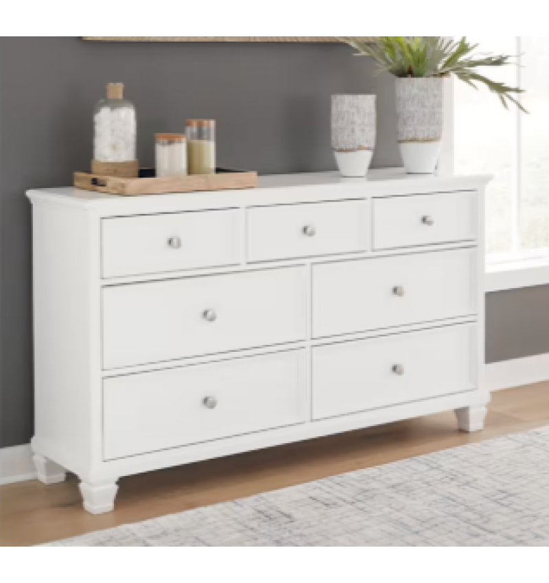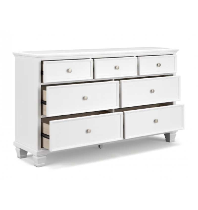 The Fortman dresser exudes timeless casual design that's ready to define your personal space. Its clean, contemporary white finish, framed drawer fronts and round metal knobs easily adapt to a variety of interiors. Featuring seven storage drawers with dovetail construction and traditional tapered feet, this piece is sure to bring elegant simplicity to your bedroom.
