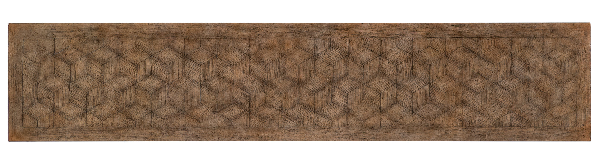 • Reimagining an historical design with a fresh take on finish, function and form, the stunning Americana Trestle Console Table has a two-tone finish combining a parquet Oak Veneer top design with a Molasses finish on the base