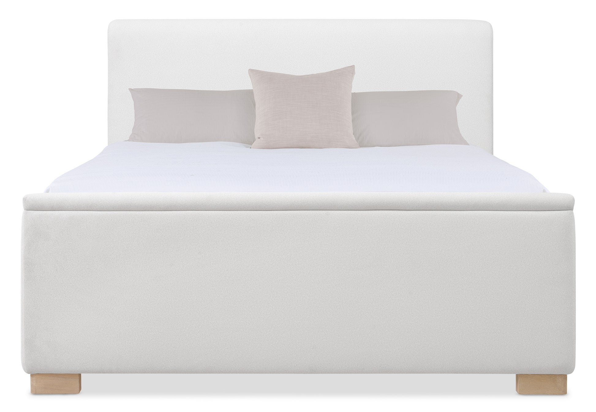 • Featuring a fully upholstered, padded design and wood block feet, this bed combines clean, contemporary lines with natural textures, making it a perfect fit for modern, casual lifestyles