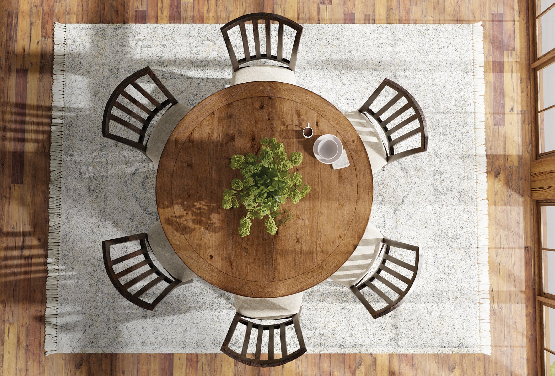• Tactile and rustic and evoking the artistry of true craftsmanship, the 60-inch round Big Sky Dining Table has an urn-shaped base finished in the Charred Timber color