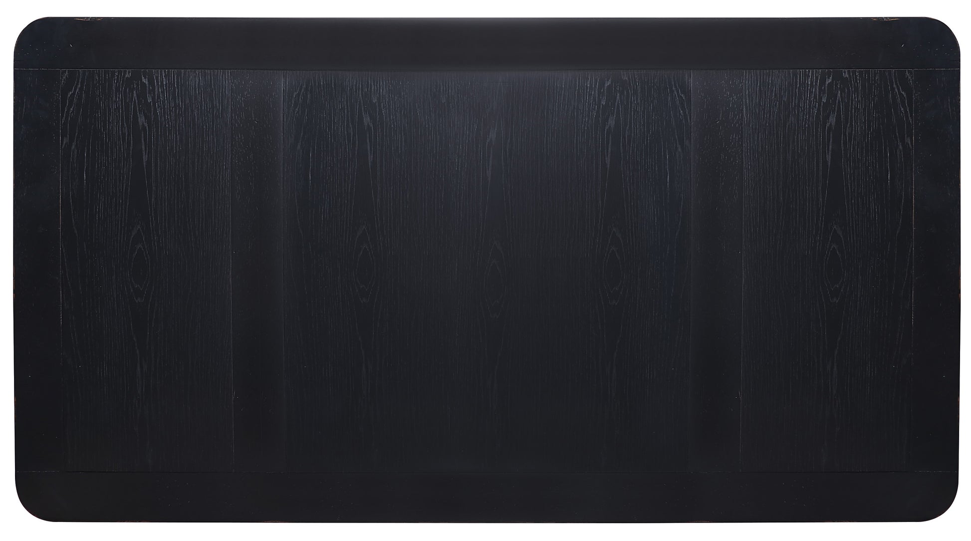 • Crafted of Pecan Veneers in a Tuxedo black paint finish with touches of warm brown, the desk is accentuated by oil-rubbed bronze-finished ring hardware and chic bun feet