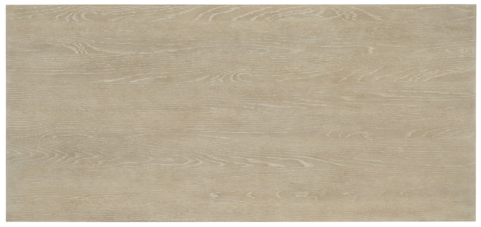 • The Terrain finish on oak veneers is dry-brushed for a casual appeal and accented by champagne-colored bar pull hardware and slender metal legs joined by stretchers on the sides and back