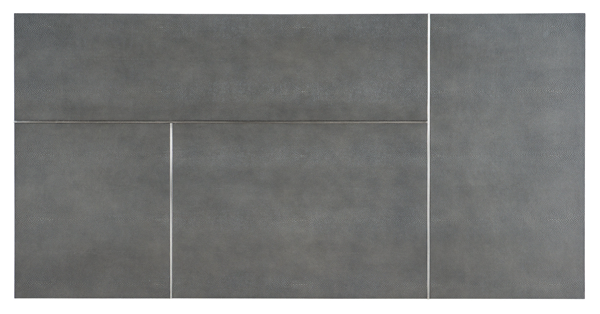 • A hand-hammered forged pewter base, stretcher and inlay and a faux Shagreen-wrapped top come together to create an eclectic, mixed-media piece in the Chapman Cocktail Table, inspired by downtown urban living