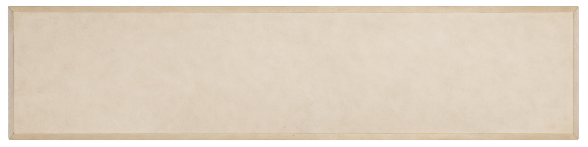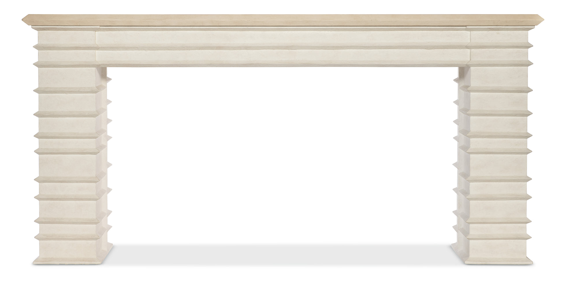 • The Melrose Console Table is a statement piece with its textured plaster-like alabaster finish and tiered, ridge architectural design