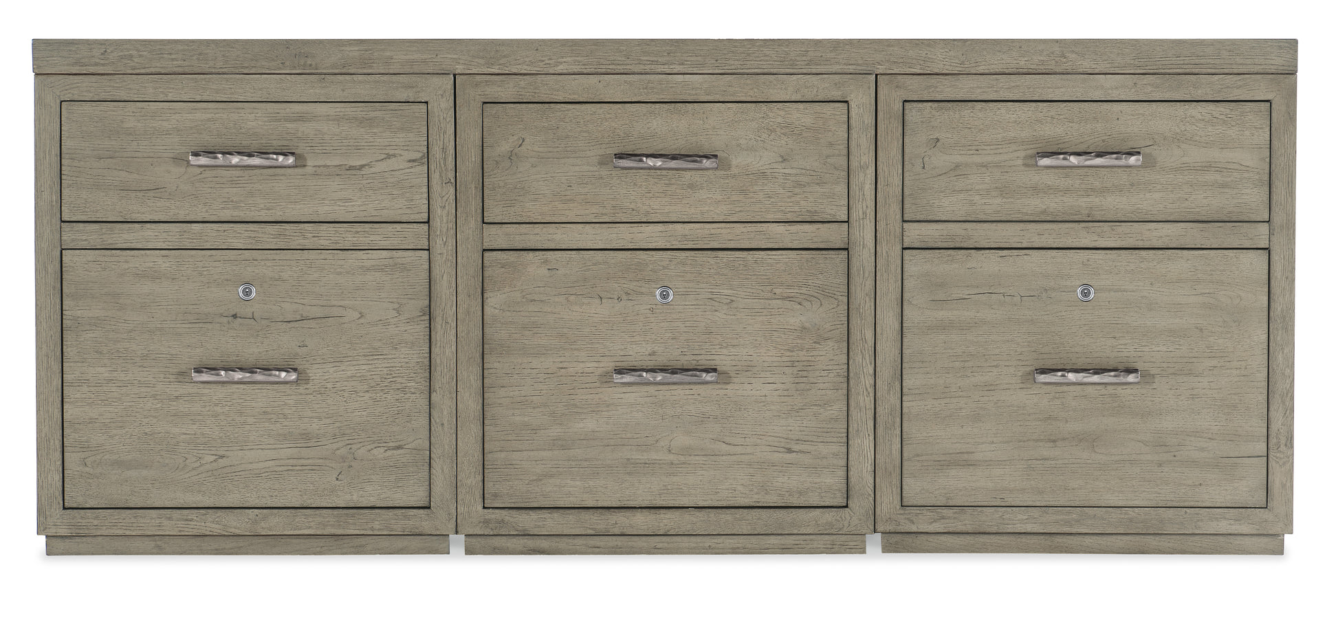 • With a rustic weathered finish and clean modern lines, the Linville Falls Credenza includes a 72-inch top and three small files packed with function