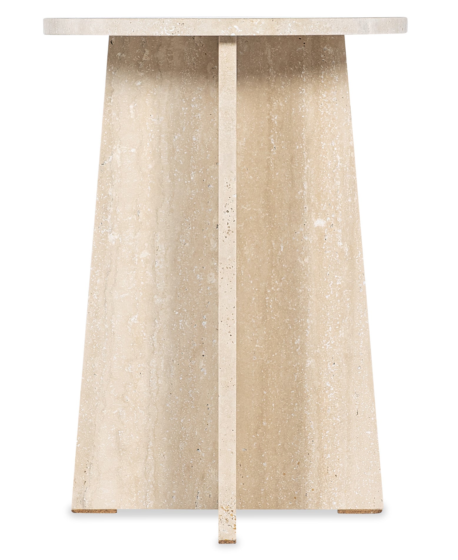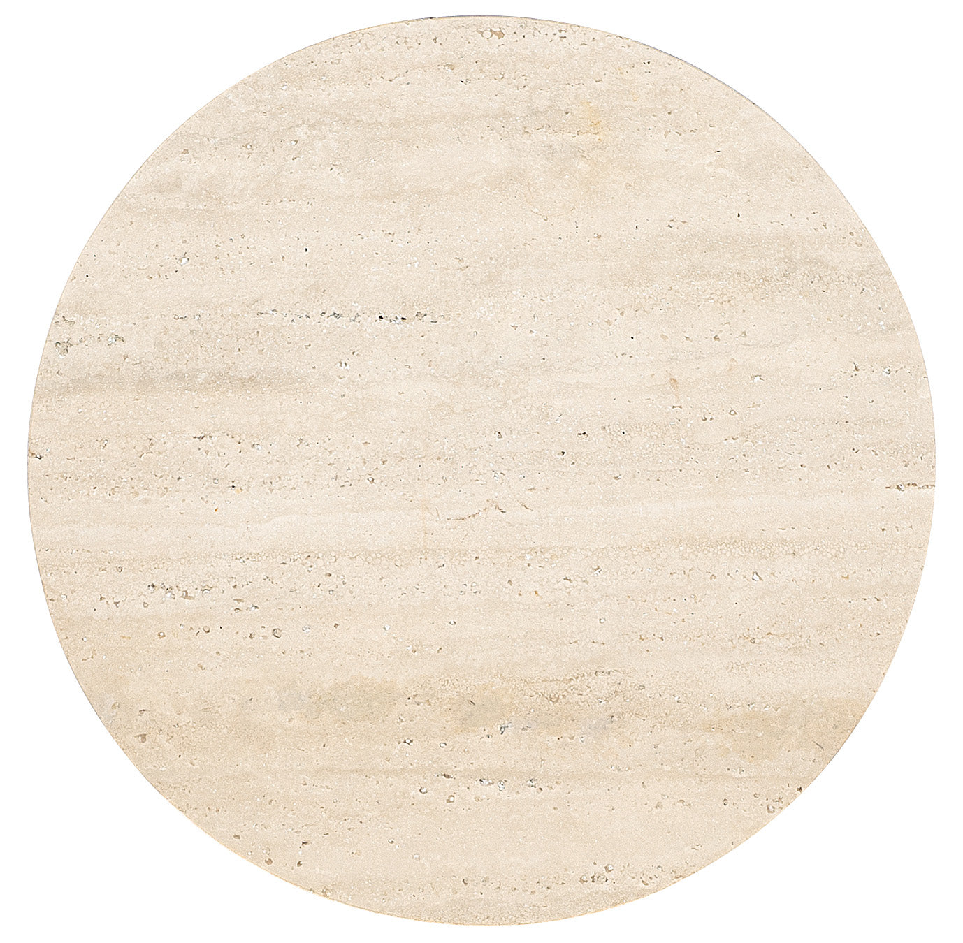 • Designed with a round travertine stone top and base, this tapered pedestal table offers a minimalist and timeless look