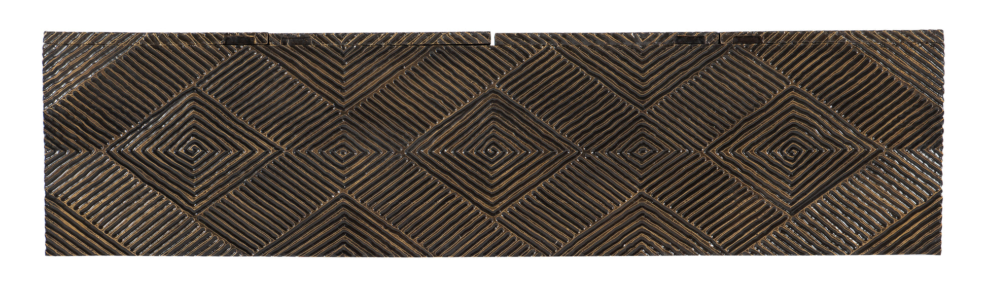 • Transcending timeless and modern aesthetics, the Marcellus Credenza marries a classic carved groove diamond motif on the door fronts with an earthy dark brown color scheme accented with the subtle sparkle of gold brass foil