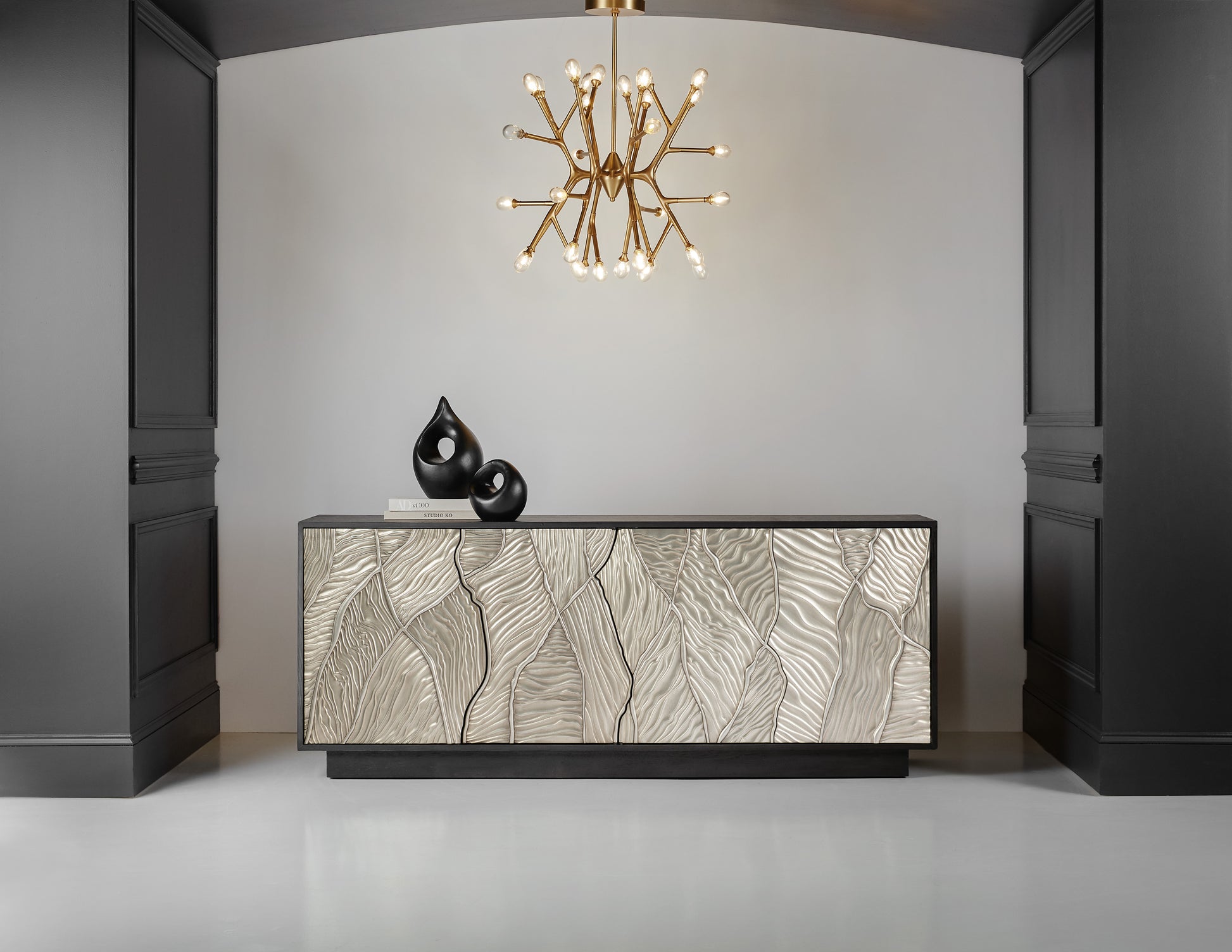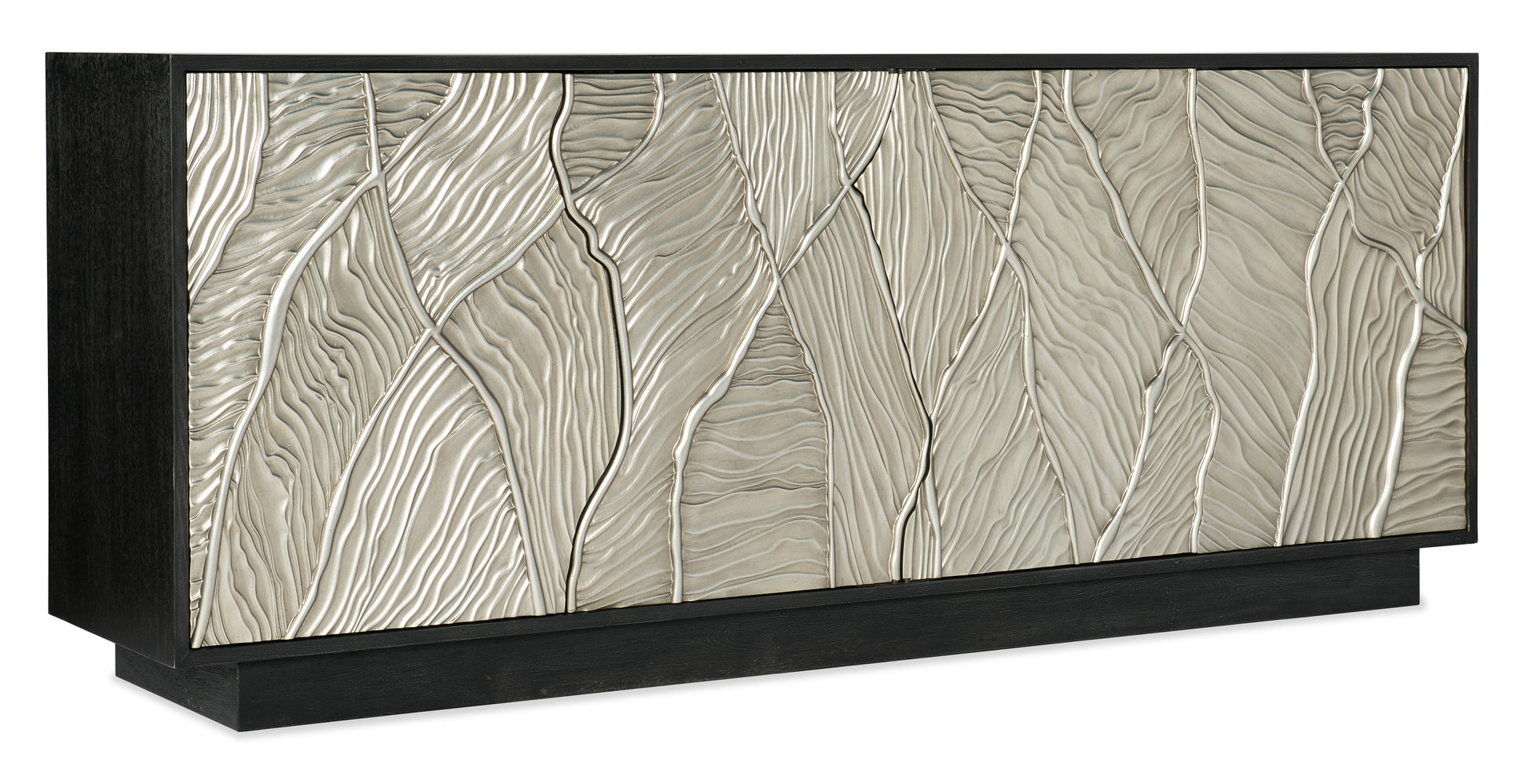 • Bring the glamour of the Big Screen to your home entertainment with the Summit Gorge console, featuring a black wood finish and dimensional door fronts in a silver tone
