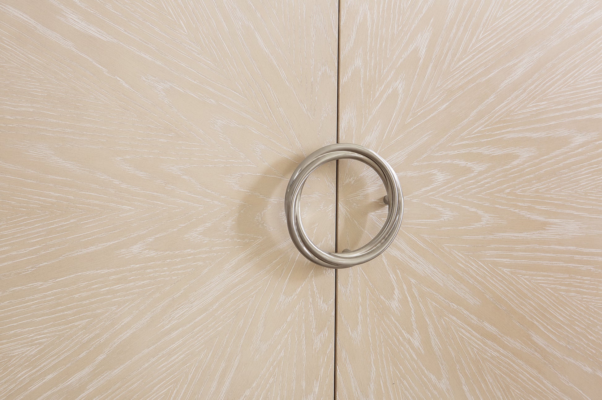 • Crafted of Cathedral and Quartered Oak Veneers with a serene Sandstone finish, the buffet has four doors with soft-close hinges and magnetic door catches and one self-closing drawer behind each pair of doors