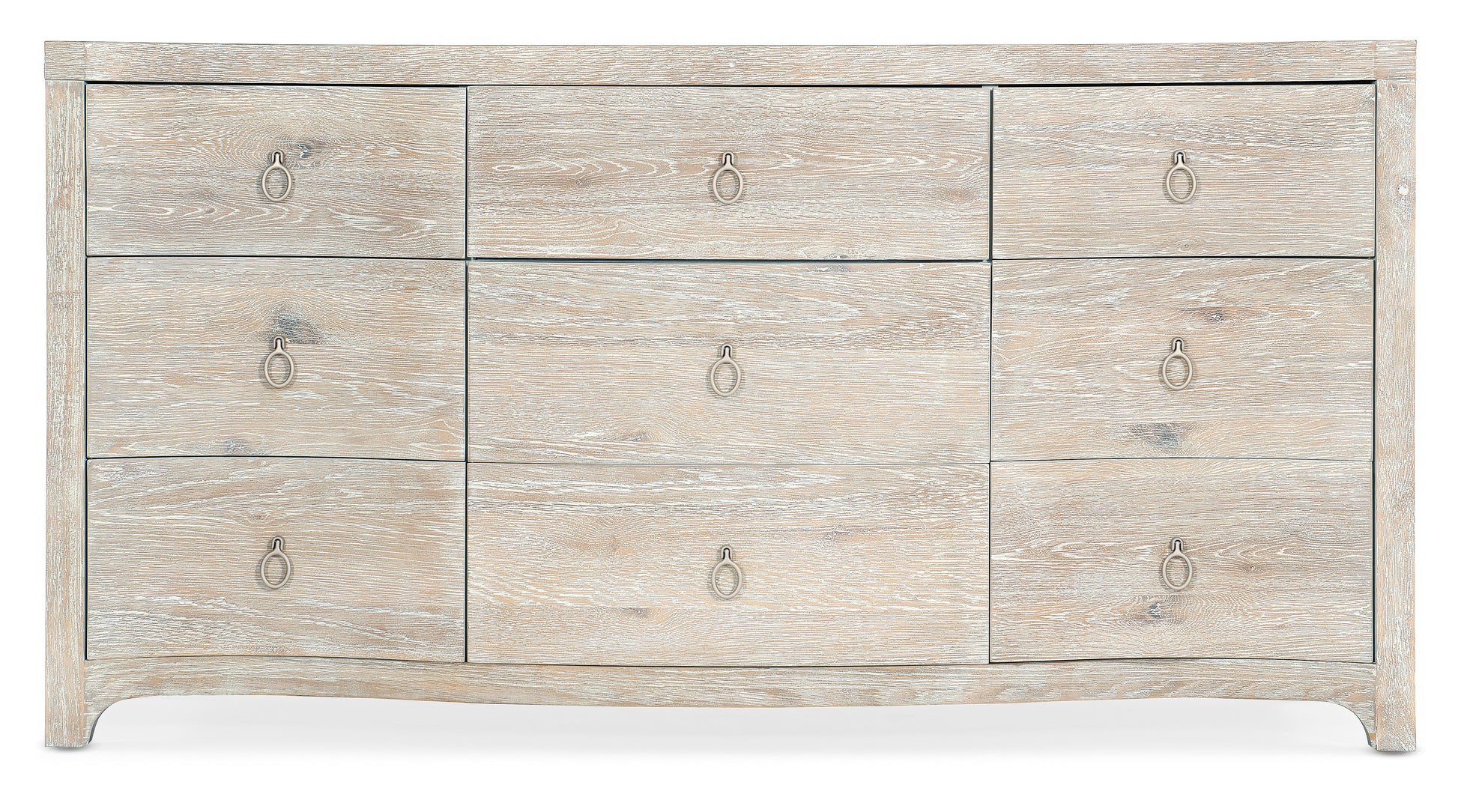 • Bring the relaxed aura and natural palettes of the outside in with the Harbour Nine Drawer Dresser, crafted of Oak Veneers in a light and airy whitewashed and wire brushed Surf finish that reveals the wood grain
