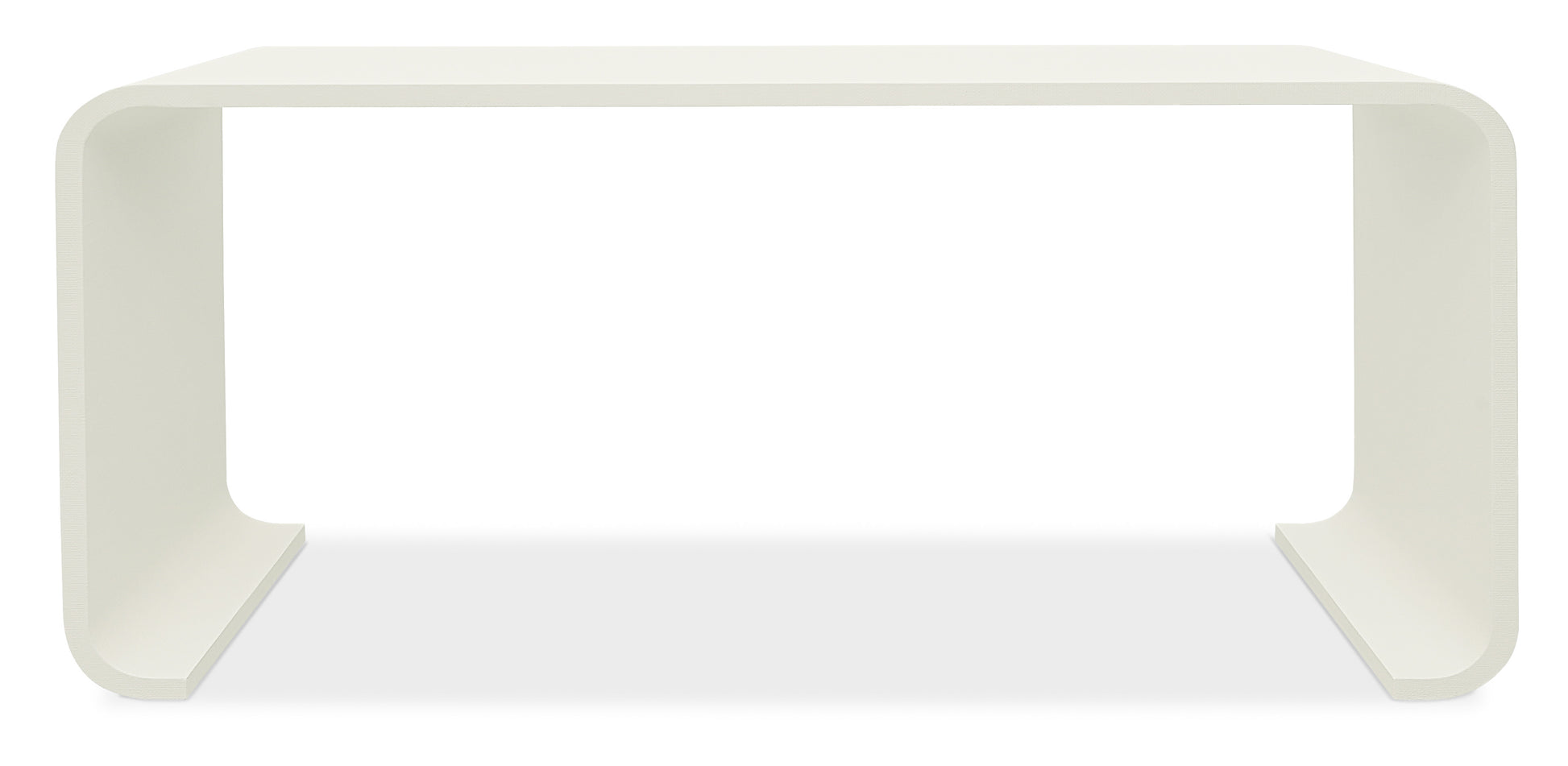 • Soft, modern and organic, the Kai Console Table in a rounded rectangle shape is crafted of Wood and Raffia in the soothing Sand Dollar finish, a white lacquered grasscloth to create a spa-like ambience