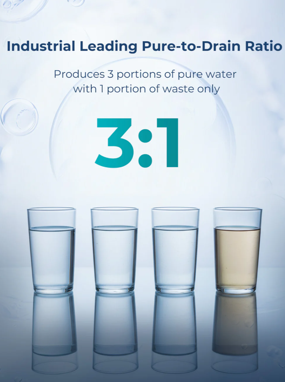- ใ๐:๐ ๐๐ฎ๐ซ๐ ๐๐จ ๐๐ซ๐๐ข๐ง, ๐๐๐ฏ๐ ๐๐จ๐ซ๐ & ๐๐ซ๐๐๐ง ๐๐จ๐ซ๐ใ Most tankless RO water filtration system have a purification rate of only 50%, while the V8 achieves an impressive 75%, which can produce only 1 cup of waste water for every 3 cups of pure water produced. With a 3:1 wastewater ratio, it significantly reduces water wastage.