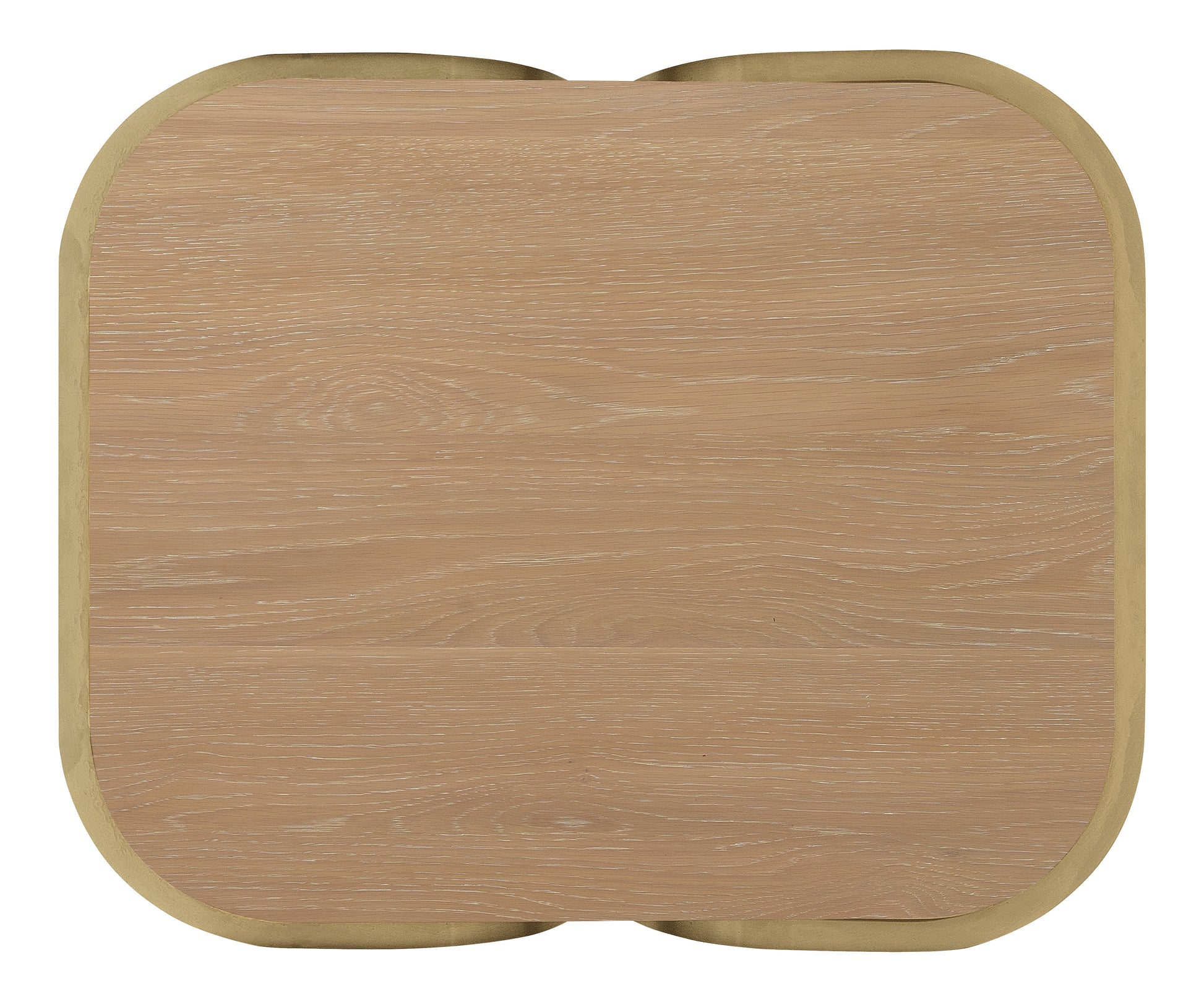 这款餐桌采用白橡木实木、橡木贴面和金属材质,表面涂以浅沙漠橡木色,搭配拉丝黄铜不锈钢桌腿。