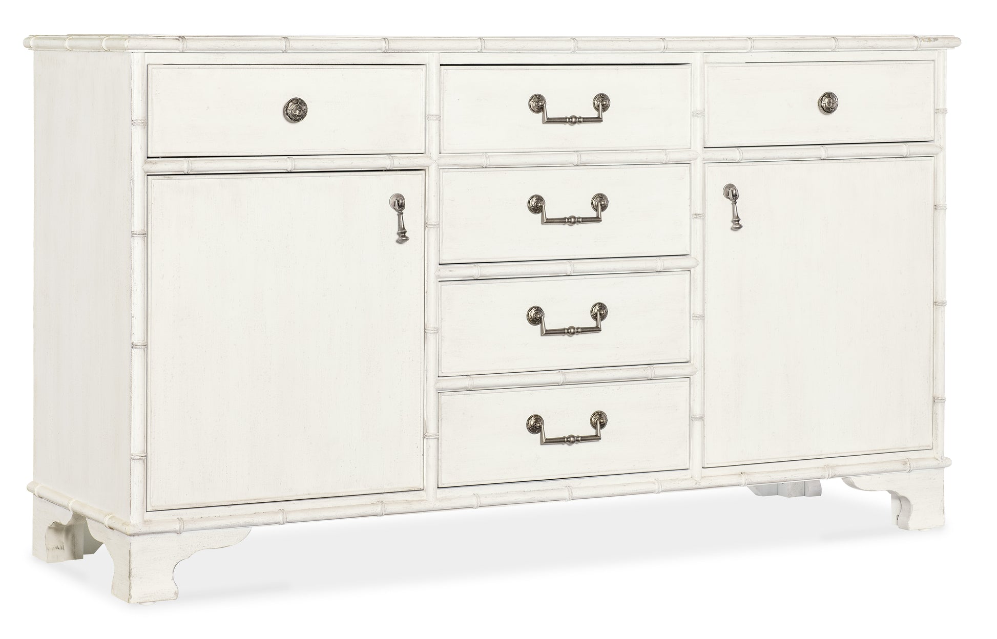 • 查尔斯顿平房餐边柜融合了美国南部沿海地区的复古魅力和西印度群岛的热带工艺,采用木材和树脂制成,配有实木边缘台面和竹子图案装饰。