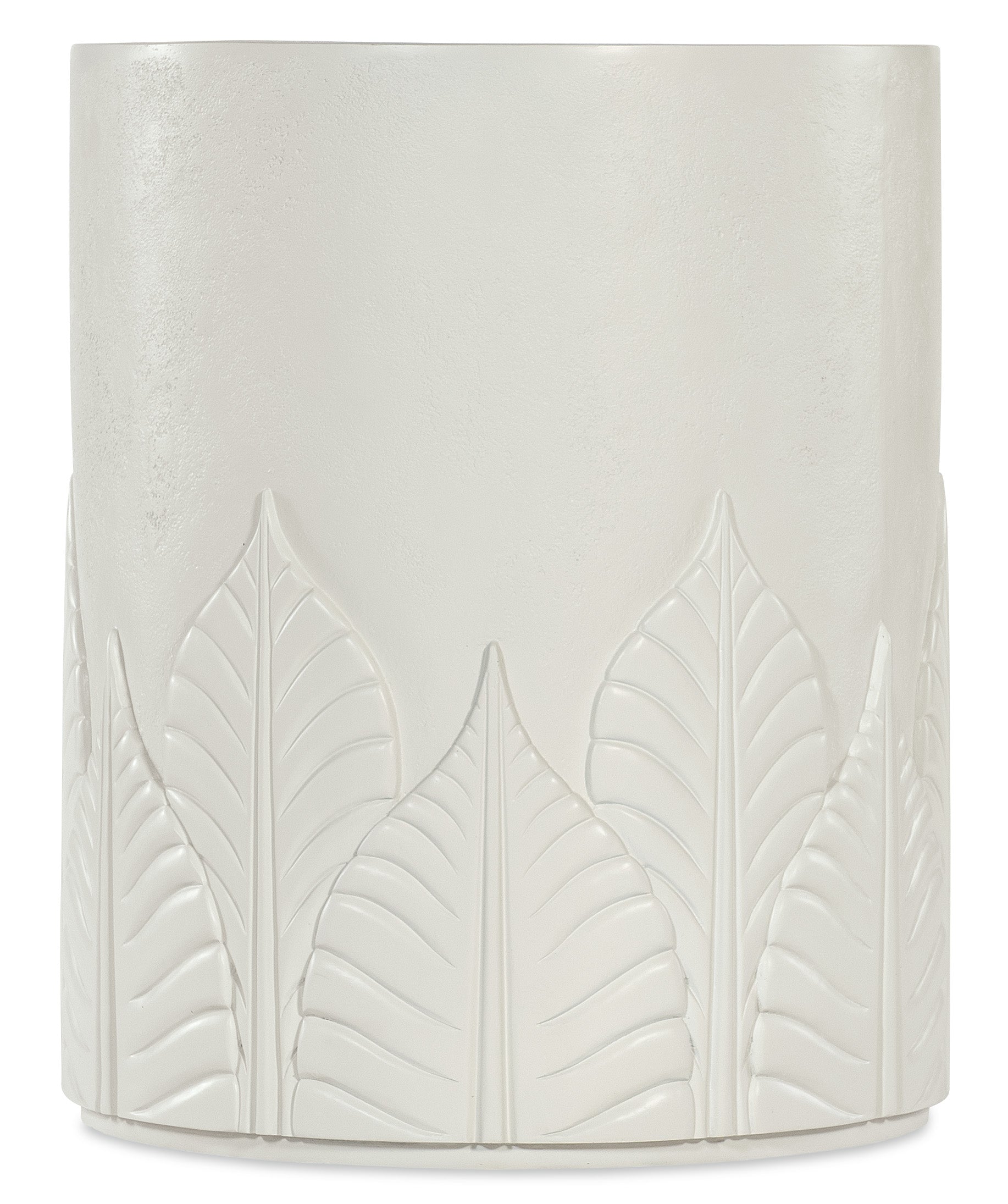 • 阿米莉亚圆形边桌的设计与鸡尾酒桌相呼应,采用质感如石膏般的饰面和压花叶子图案。