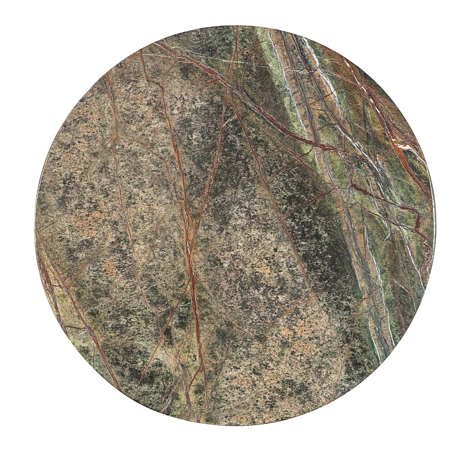 • Valor边桌质感如陶器般精美,采用黑色饰面的芒果实木打造,搭配绿色森林大理石桌面。