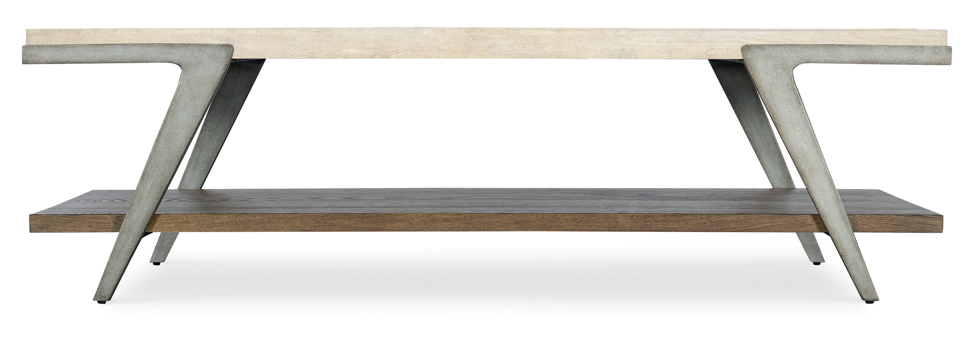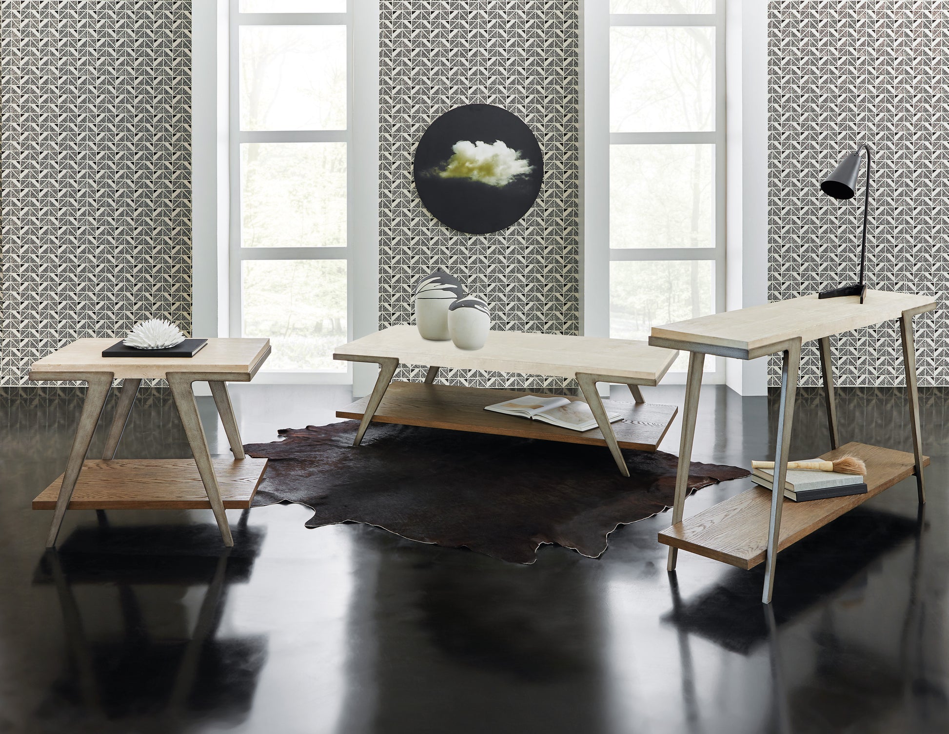 这款家具采用橡木贴面,大理石台面呈奶油色,带有天然中木纹理,搭配灰色金属框架。Hooker 推出 Commerce & Market 品牌,旨在吸引新一代家具消费者,该品牌主打装饰性和休闲性家具。