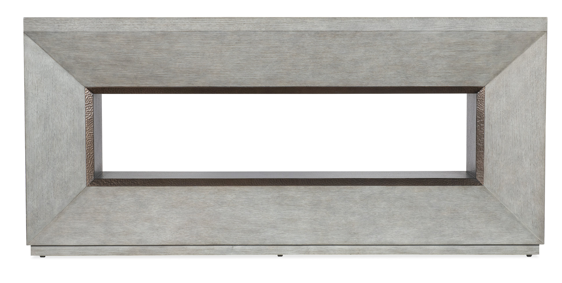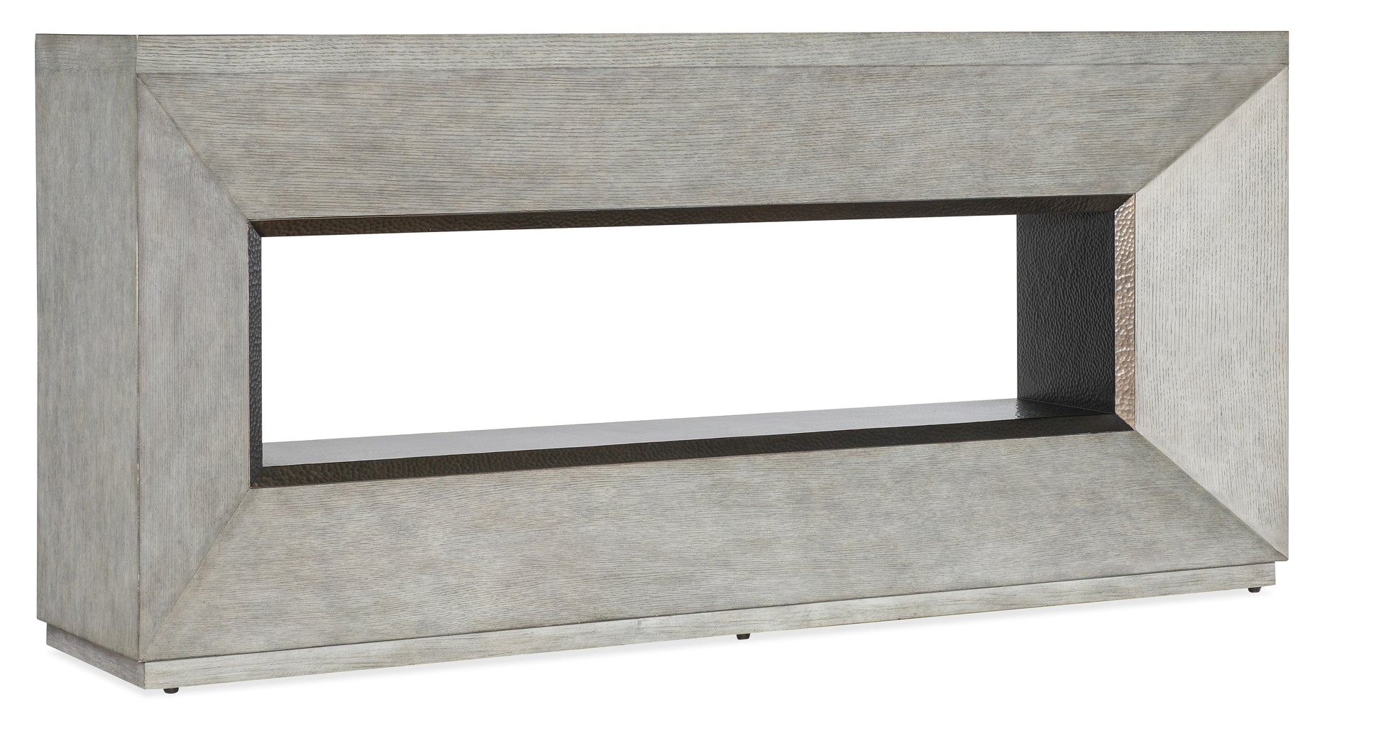 • 采用橡木贴面制成,开放式区域饰以锤纹仿古黄铜金属,并配有底座。