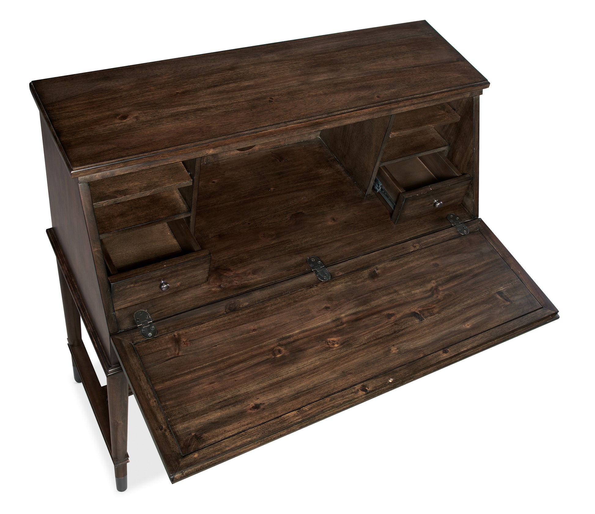 侧面和背面的木质横撑与纤细的桌腿相得益彰,桌腿末端配有金属套圈。为了吸引新一代家具买家,Hooker 推出了 Commerce & Market 品牌,该品牌主打装饰性和休闲性家具。