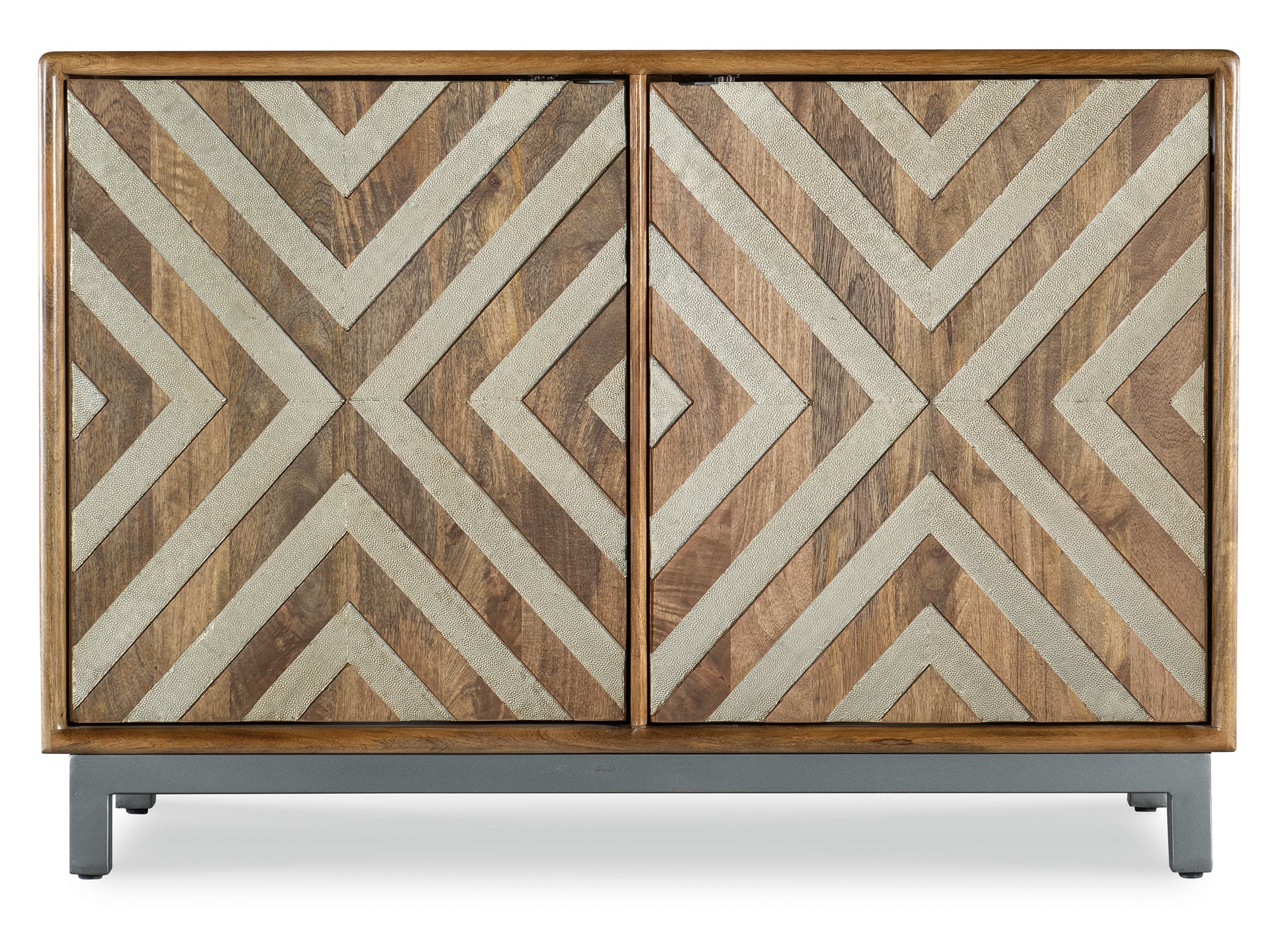 • 塞拉蒙特双门五斗柜经典永恒,又不失休闲舒适,柜门采用芒果实木,饰以银色人字纹图案,搭配拉丝锡铁底座。