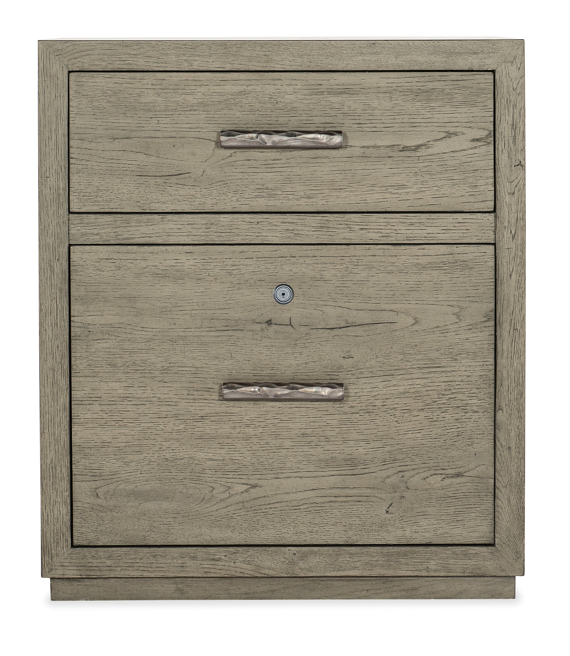这款文件柜采用橡木贴面制成,饰以仿古锡色纹理金属拉手,顶部配有实用抽屉,底部配有带锁文件抽屉,并采用 Pendaflex 文件系统。