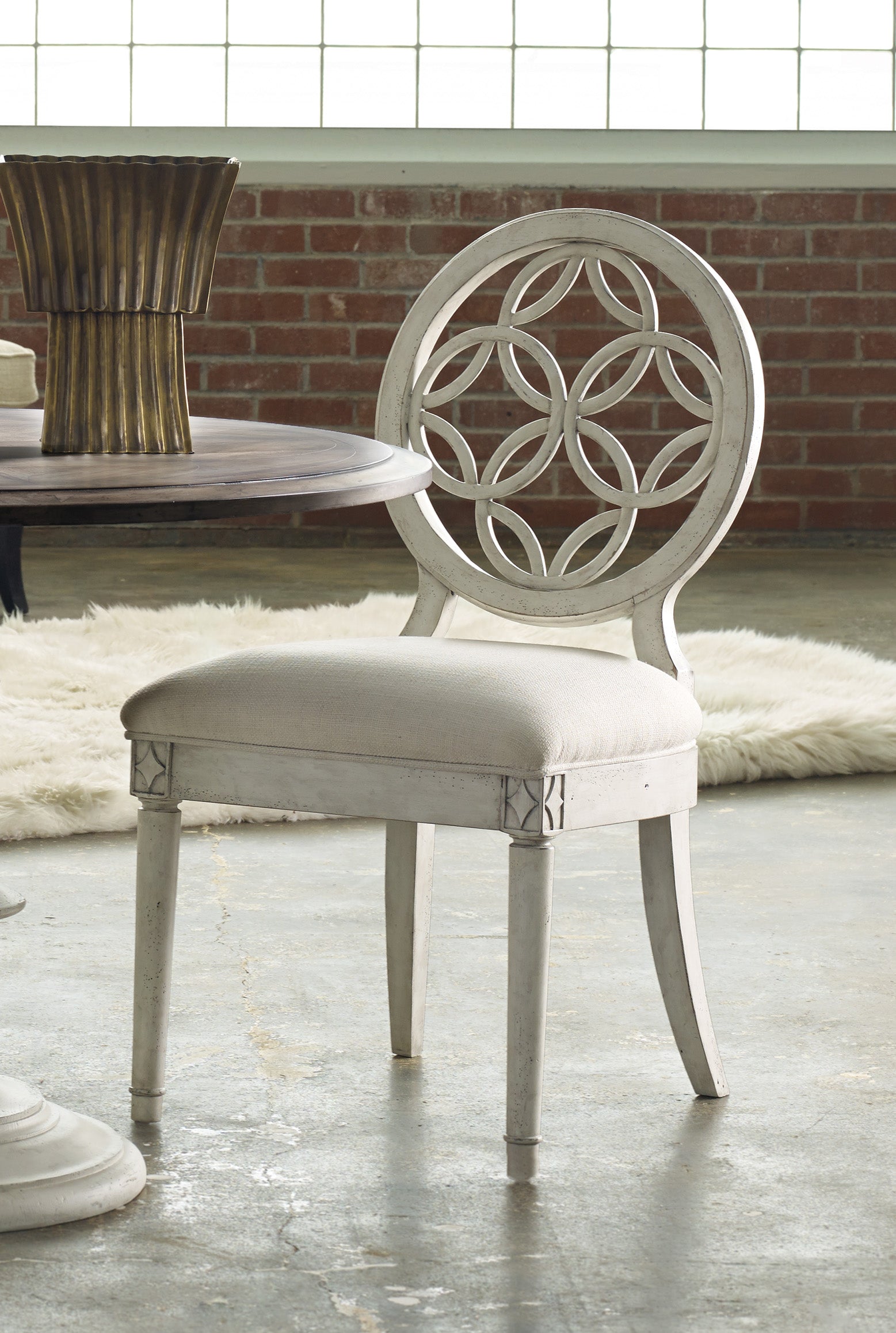 布林利边椅椅背采用蕾丝般交错的圆形镂空设计,美观大方,能为与家人朋友的聚会时光提供舒适的坐感。