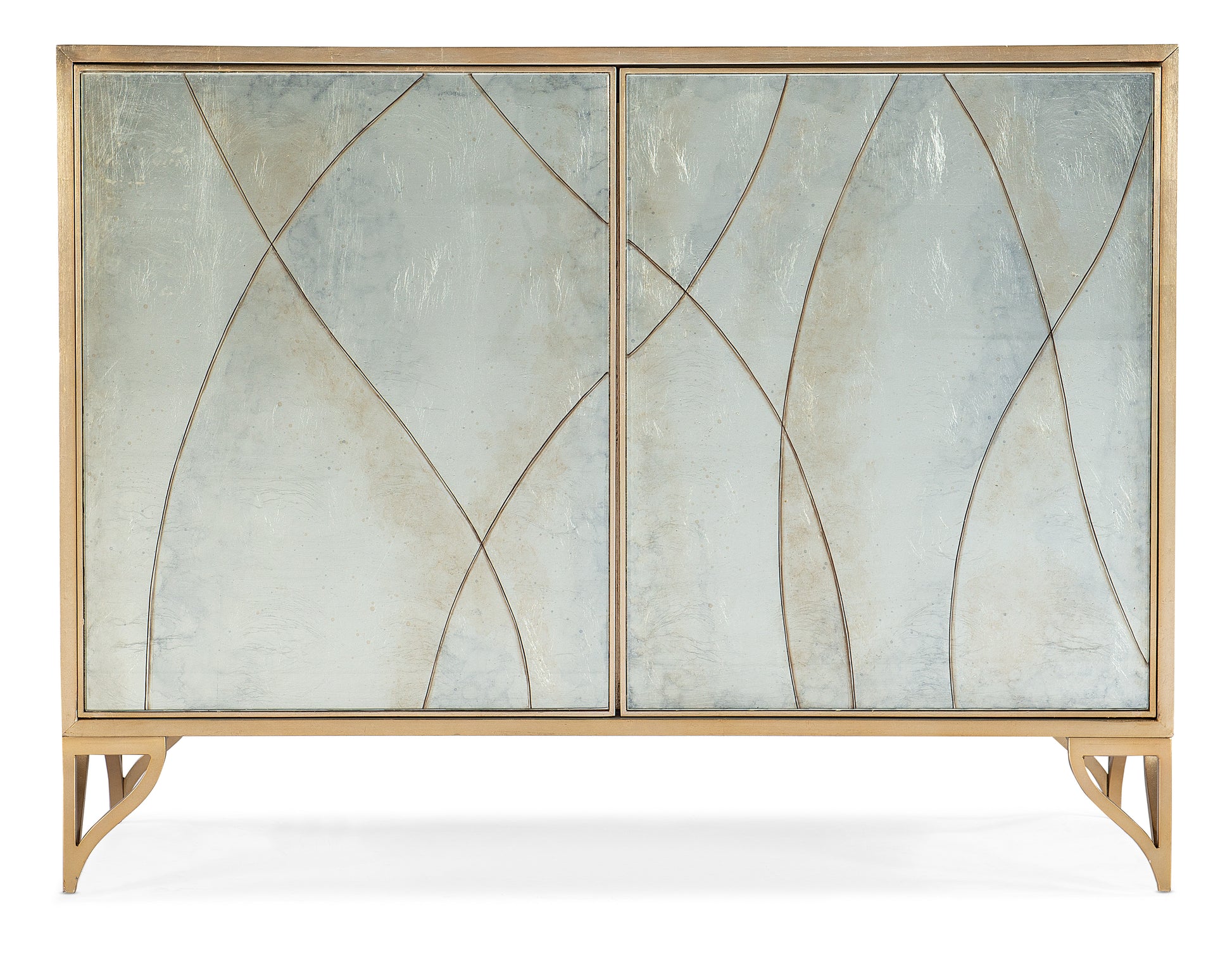 • 乔安妮柜外观精致自然,银箔玻璃门上饰有蕾丝状蚀刻图案,金色框架和底座更添华丽之感,灰色内饰则为其增添了一抹优雅。