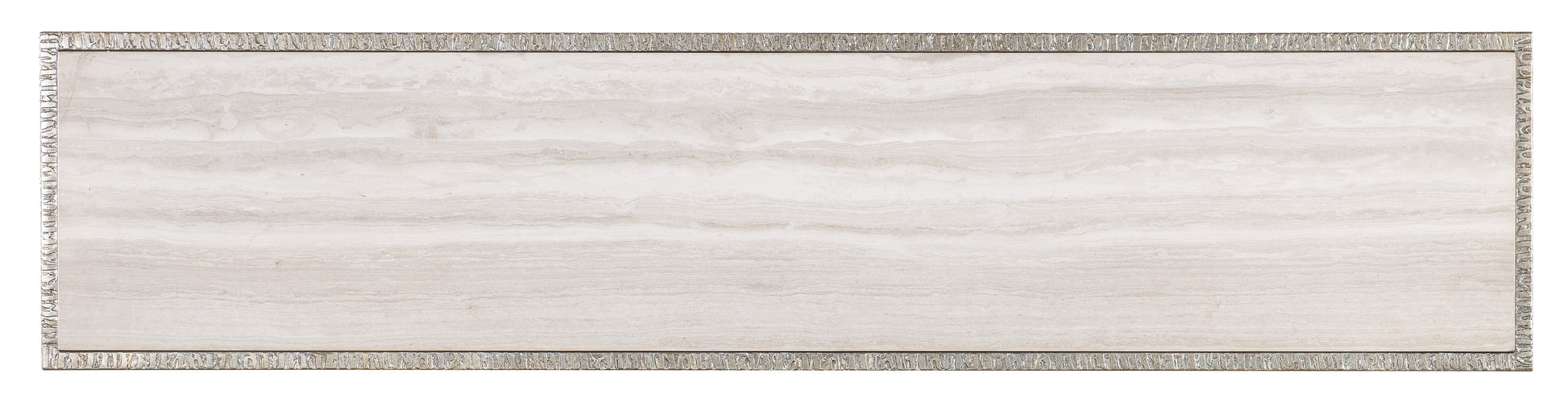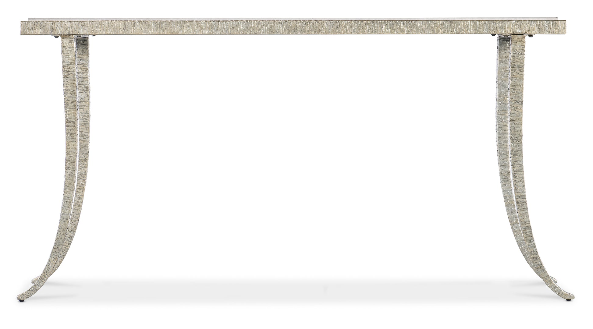 Sabre控制台桌将精湛工艺与工业风格完美融合,采用银色纹理金属框架、外撇桌腿和大理石桌面。