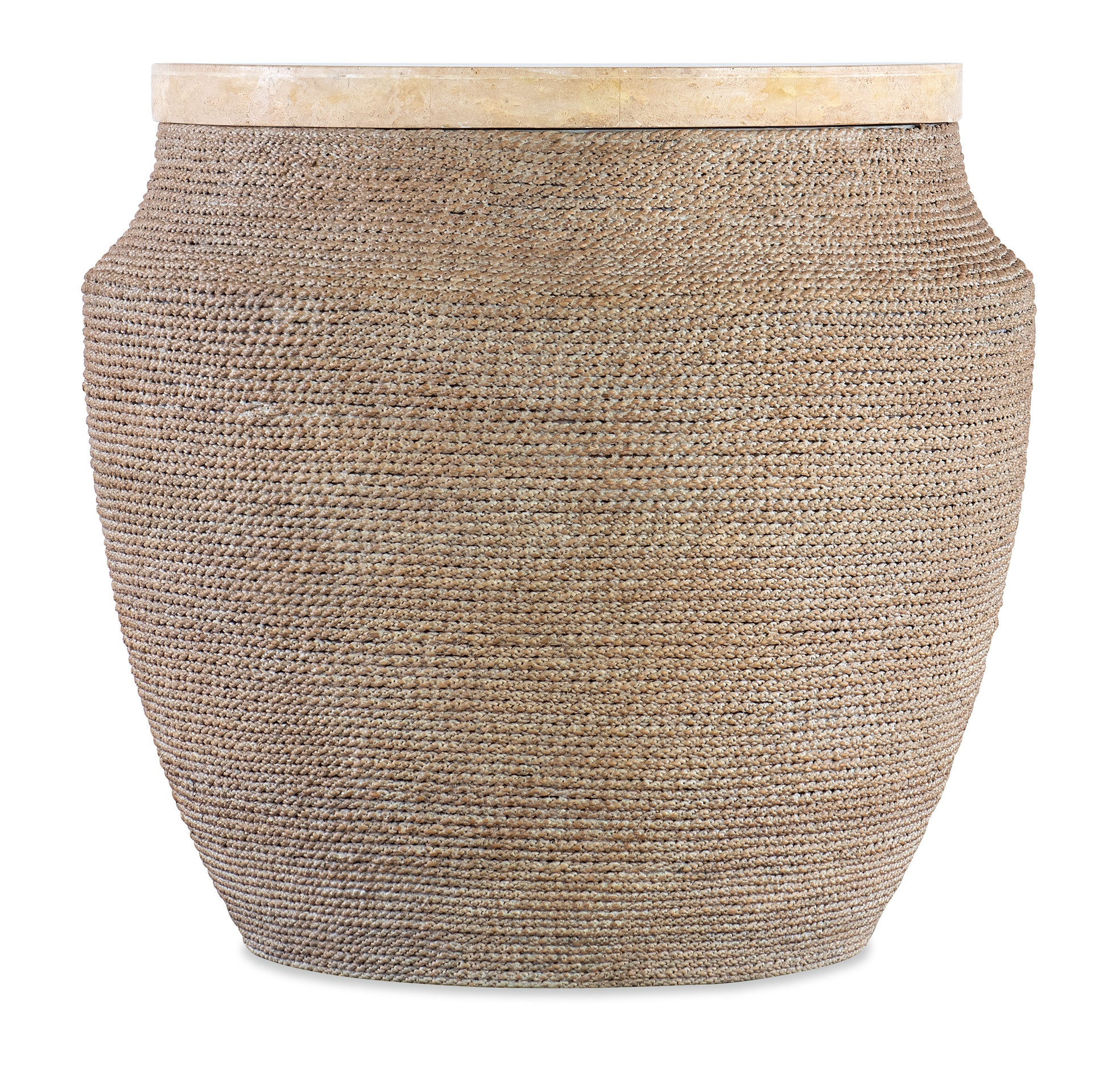 • 这款名为“静谧休憩”的圆形边桌,风格质朴自然,又不失时尚感,桌面采用绳索缠绕工艺,并饰以洞石贴面。