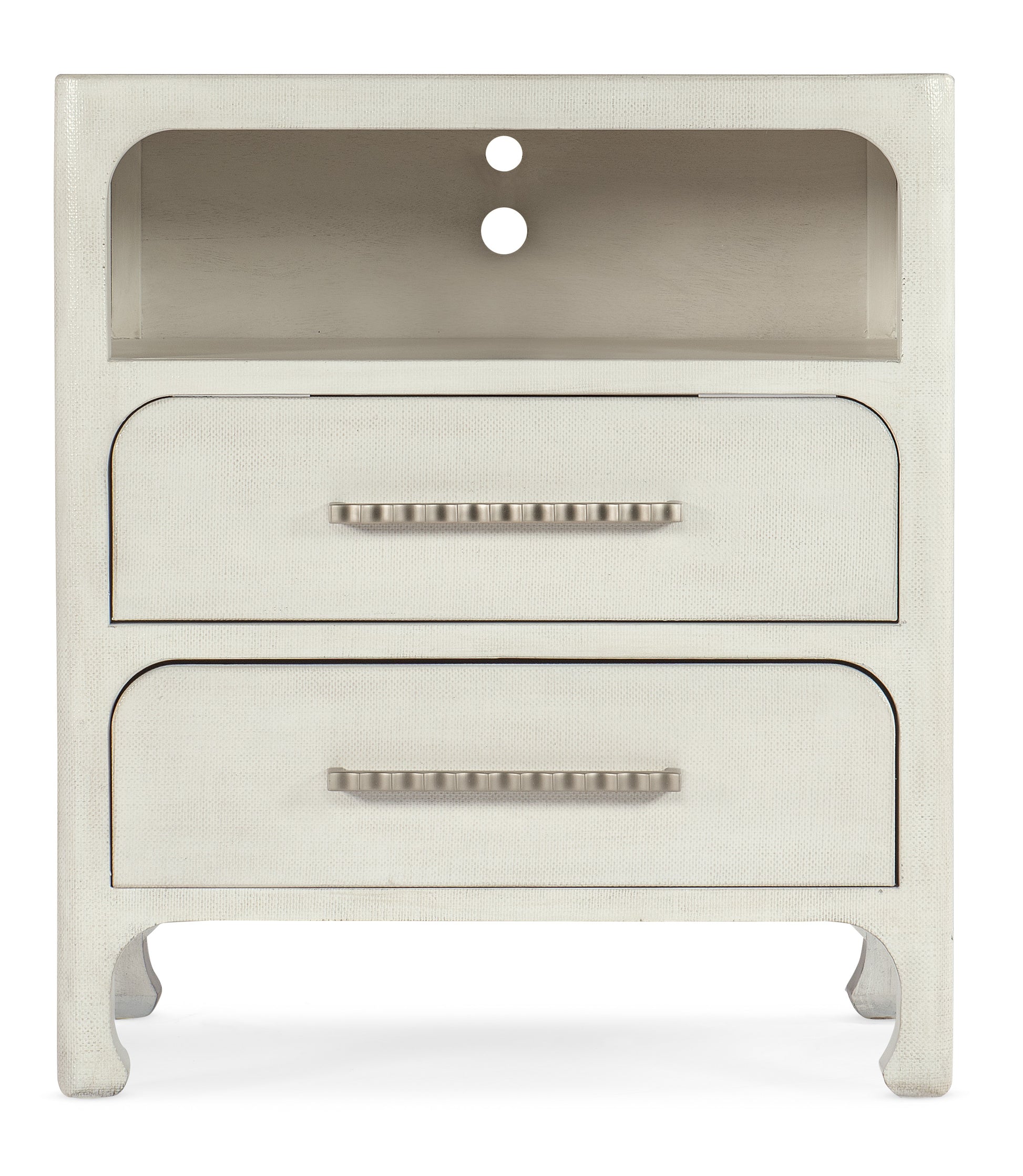 • Serenity 床头柜的设计灵感源于休闲的海滨生活方式,兼具时尚精致感,采用木材和拉菲草编织而成,并以白色漆面草编面料 Sand Dollar 饰面。