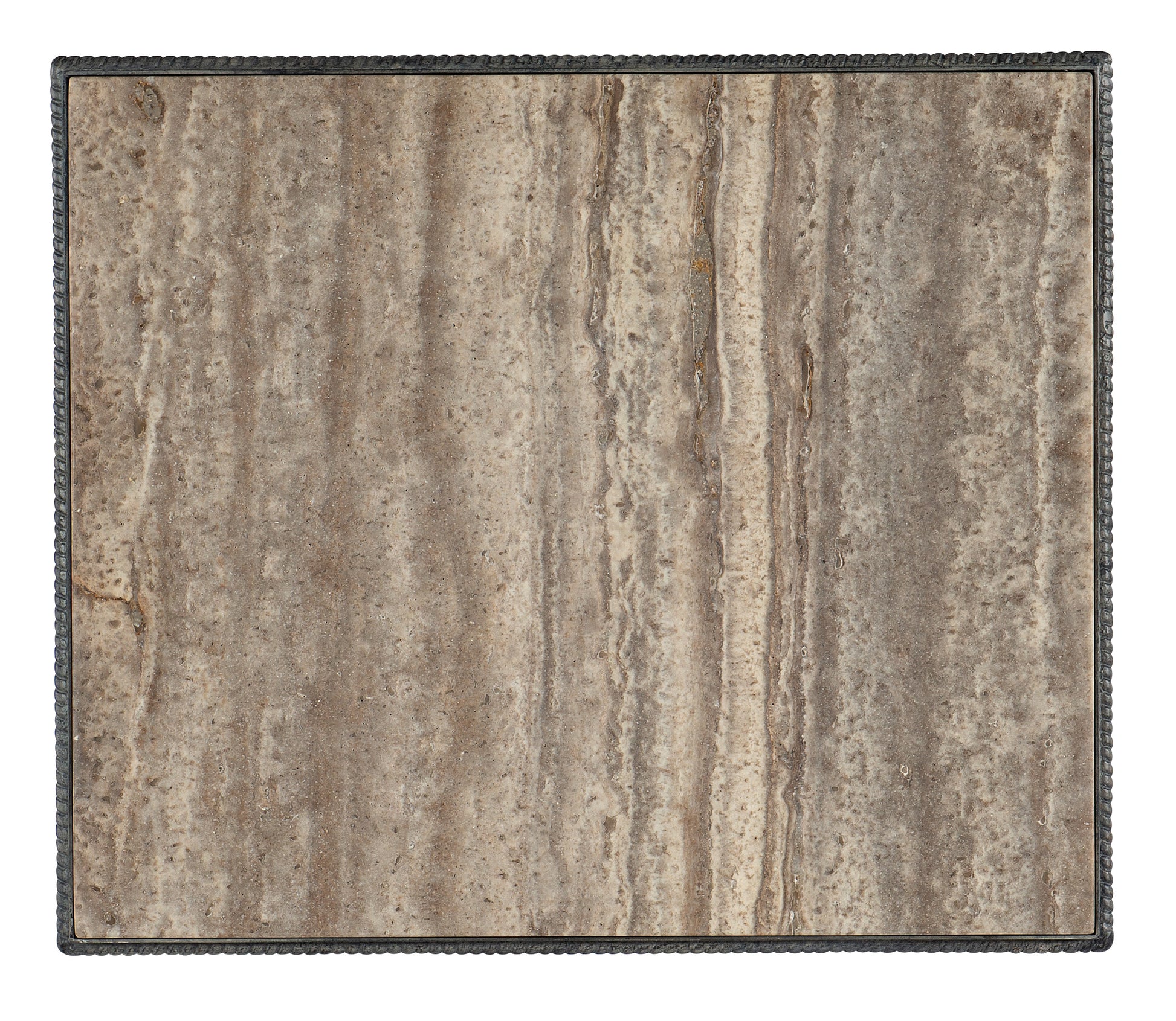 • Traditions边桌采用灰棕色调的石材贴面桌面,搭配铜绿色金属底座、扭曲桌腿和横撑,为您的家庭活动室营造舒适温馨的休憩氛围。